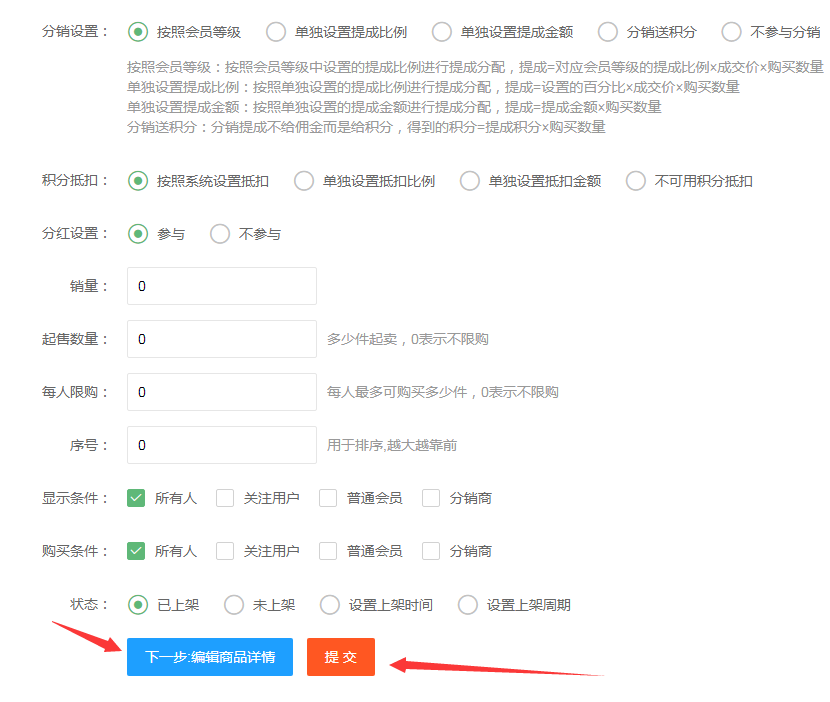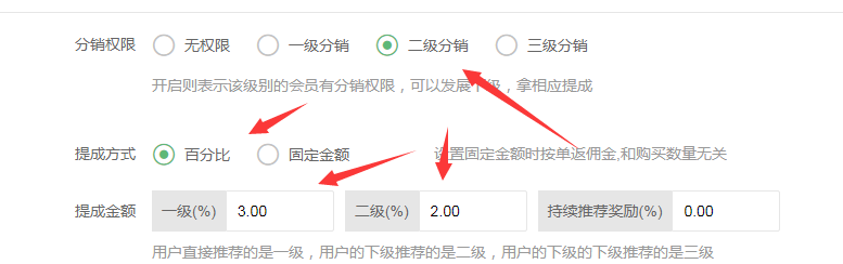 然后下面是設(shè)置分銷的提成比例,統(tǒng)一設(shè)置,也可以每個產(chǎn)品里面單獨(dú)設(shè)置