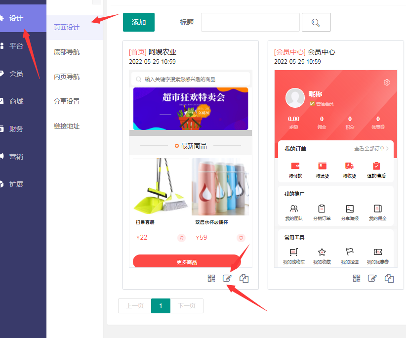頁面設(shè)計,主要針對主要,和自定義添加的頁面