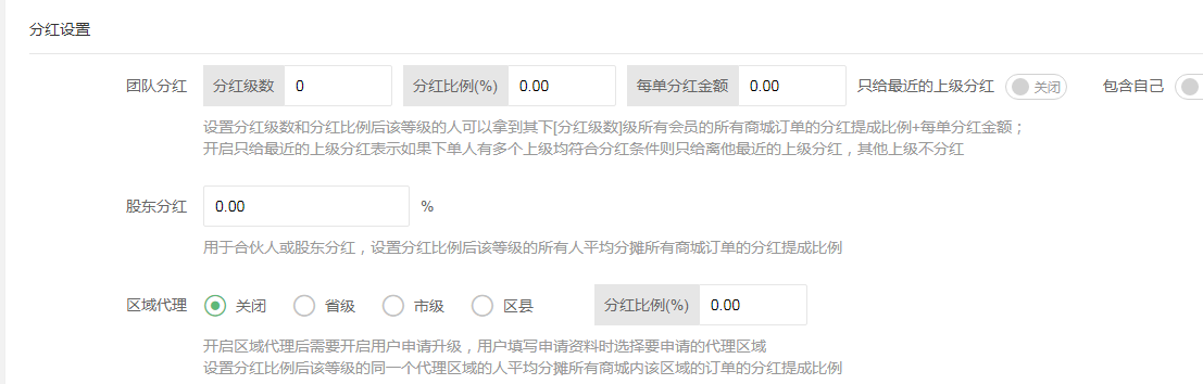 分紅 區(qū)域代理,這個根據(jù)自己需求設(shè)置,一般懂的人才會用,分銷模式,可以不用這個