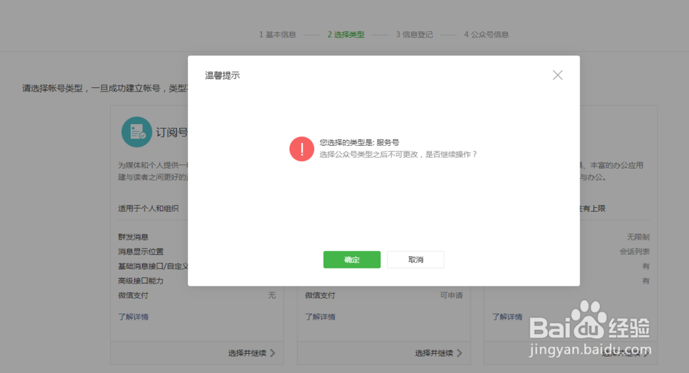 2、選擇賬號類型--服務號;